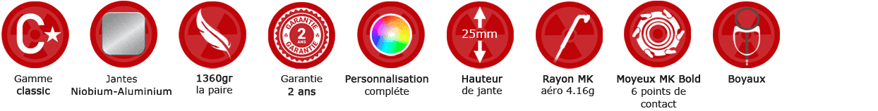 - Jantes MK all tubular patins 435gr par cercle & 25mm de haut - compatible boyaux