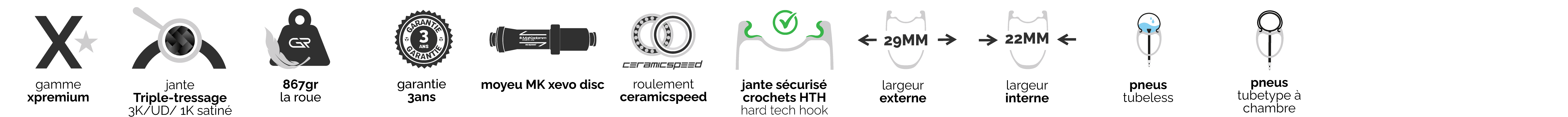- Jantes MK ELEVA xpremium à disque - CX/CV/CX - WDA - 29mm externe - 22mm interne - compatible pneus/chambres ou tubeless