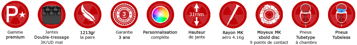 - Jantes MK gravax 31 à disc premium 325gr par cercle & 31mm de haut - 30mm exterieur - 25mm interne - process Hookless HTH - pneus/chambres ou tubeless