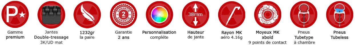 - Jantes MK slim 38 premium patins 360gr par cercle & 38mm de haut - compatible pneus/chambres ou tubeless